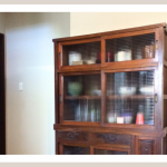 ガラス棚とサイドテーブル、古い物をちょっとずつ取り入れています。 一番惹かれるのは、その怪しげなとろみ、つや、サビ感…。 アンティークのある空間は心地よいです。朝昼夜、それぞれの光と調和しているところ……