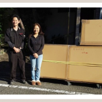 東京都目黒区。 住宅やマンションが立ち並ぶ通り。 その並びに『段ボールの山』出現! 高橋様、素敵な笑顔で出迎えてくださいました。 この度お届けさせていただいたのは、9尺重ね水屋箪笥上・下段、ローボード、鏡フレームの4……