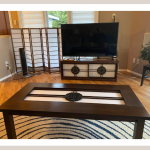 透かし彫りのテレビ台は以前購入したものですが、同じ模様で座卓があれば、と思っていたところ同じ透かし彫りが売られたので、これを座卓にリメイクしてもらいました。前回購入したテレビ台は米国移住の際、勤務していた……