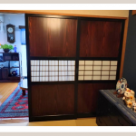 明治初期の扉をラフジュ工房さんで見つけてリペアしてもらい、以前から憧れていた和モダンな部屋が出来上がりました。表と裏で表情が変わるところが気に入っています。 ……
