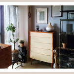 マンション内で引越し、昔から使っていた家具とマッチするアイテムを探しました。 こちらで北欧のヴィンテージチェストにペインティングしたものに出会い、「アップサイクリング」という私のモノ選びのコンセ……