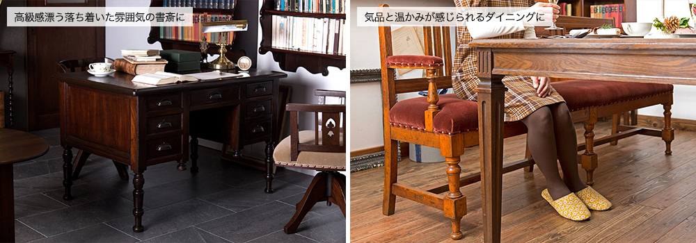クラシカル感あふれるアンティークのバンフット家具を現代のインテリアに取り入れれば、空間にグッと深みを与えることができます。