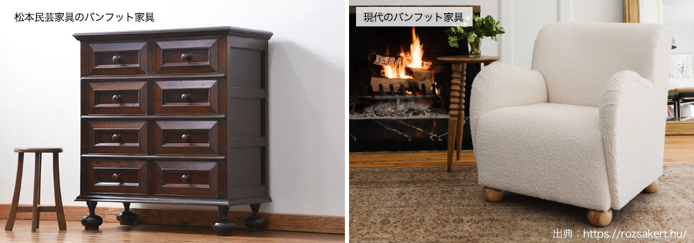 もちろん日本でもバンフットの家具はたくさん作られ、例えば和と洋を織り交ぜたデザインが特徴の老舗家具メーカー「松本民芸家具」でも見ることができます。