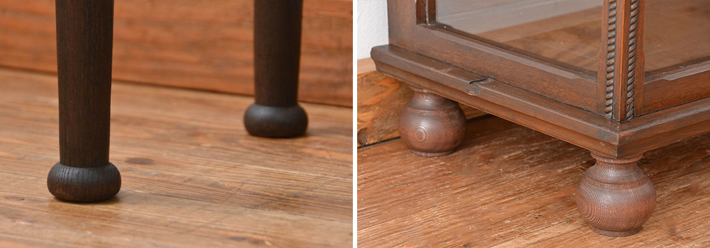 また見た目の美しさだけでなく、椅子やオットマンのような軽い家具からソファやキャビネットといった重さのある家具まで、どんな家具もしっかりと支えることができ安定力抜群です。使われる素材はオーク・メープル・チェリー・クルミなど多種多様にあります。