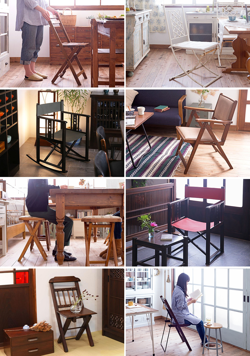 古い時代から存在するフォールディングチェアは、長い歴史の中で多種多様なスタイルが生み出されてきました。現代でもなお進化を遂げながら製造され続けるフォールディングチェアは、私たちの生活には欠かせない優れた家具です。