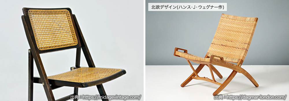 ラタンの自然な風合いや美しい編み込みが特徴です。北欧デザインでもよく見かけ、中でもハンス・J・ウェグナーがデザインしたものが有名です。通気性が抜群で、ラタンのしなやかな性質によって優しく体を包み込みます。