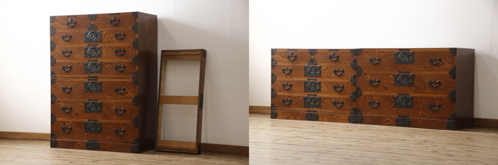 2つ以上に分かれた箪笥を重ねて使えるのが、重ね箪笥です。重ねる箪笥は高さが揃っているものが多く、横並びにしても使うことが可能です。