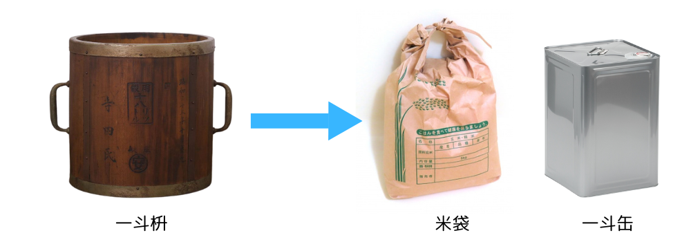 一斗枡が使われなくなった背景には、米や酒などの流通形態の変化も関係しています。米は袋詰めされ、酒は瓶や缶で販売されるようになり、一斗枡で計量する必要性が薄れていきました。さらに農業や酒造業が工業化・機械化されていき、一斗枡のような手作業の道具は機械に取ってかわっていったのです。