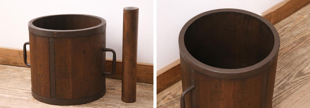 一斗枡(いっとます)とは、1斗(約18リットル)の容量をはかる計量器のこと。古くの日本において主に米や酒、調味料などの計量に使用されていました。木製でできており、正方形や円筒形といった形状があります。日常生活や商取引に欠かせない道具であり、主に江戸時代から昭和中期にかけて広く用いられていました。