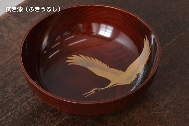 漆を何度も重ねていくことで漆が完全に下地を覆う技法です。不透明となるため、漆が持つ色艶を楽しめます。