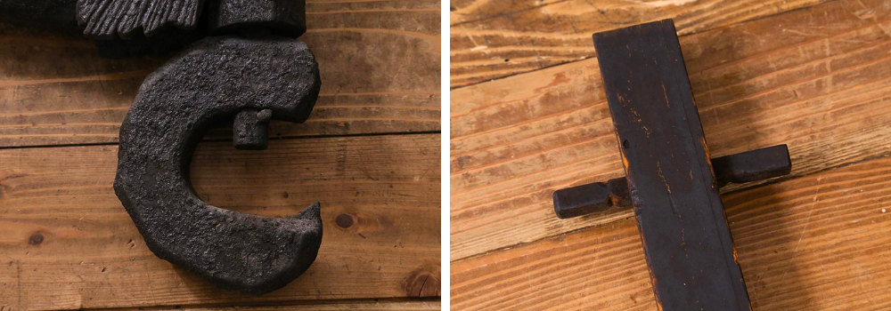 自在鉤は、職人の手仕事の美しさが魅力の一つです。木彫りの装飾や鉄製の鍛造技術が見られ、同じものが二つとない一点ものの味わいを感じられます。