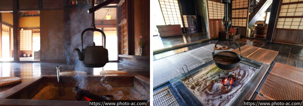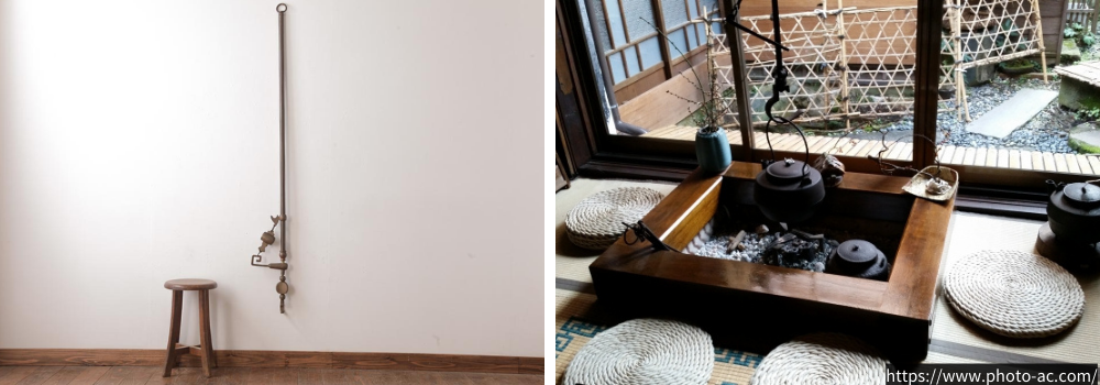 - 支柱(しちゅう):囲炉裏の上に渡した梁(はり)から吊り下げられた長い棒