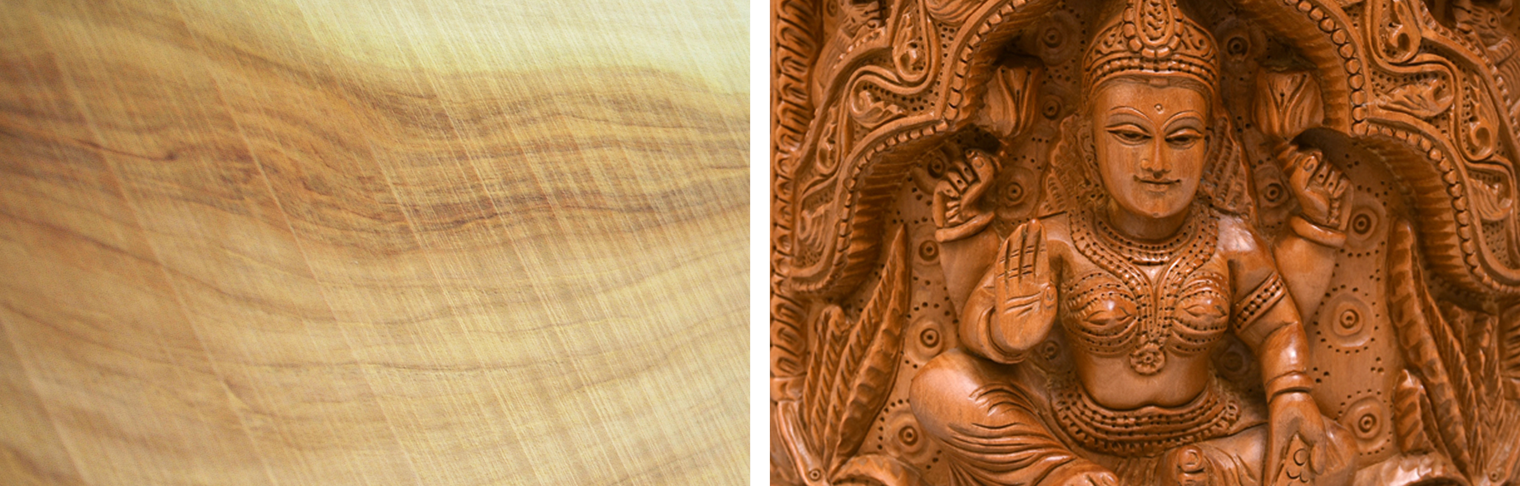 木質は硬く緻密で滑らかなであるため加工性に富み、特に彫刻においては最適の木材とされています。