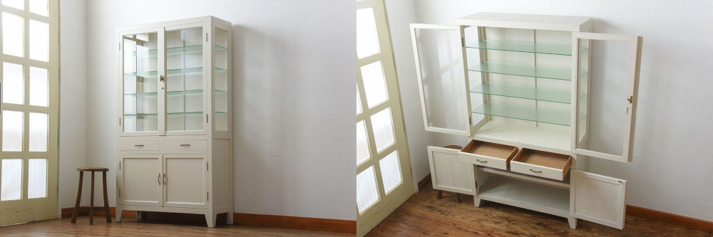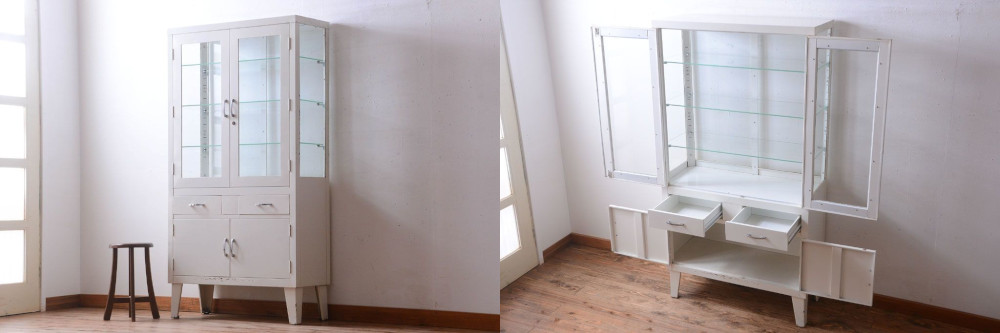 古き良き医療用キャビネットは、現在のインテリアに置いても意外なほど活躍の場があります。