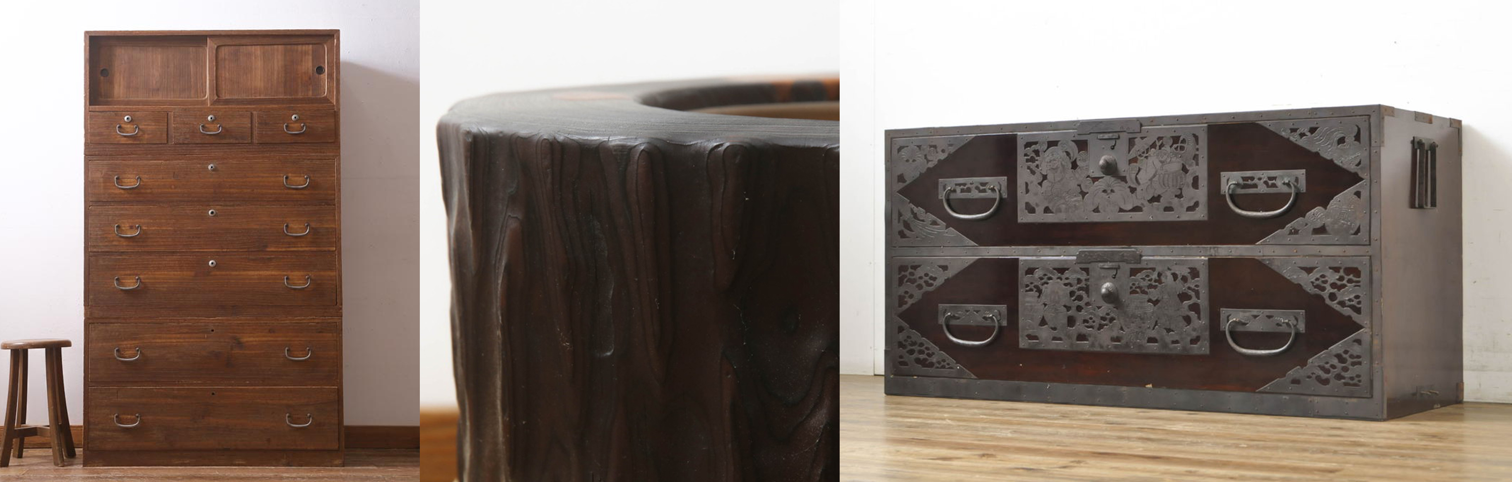 湿気などに気をつければ、100年以上はもつとされている桐材の家具。木材に含まれている「タンニン」という成分により時が経つと黒く変色していきますが、その分重厚感のある落ち着いた佇まいで現代に生きる私たちを魅了します。
