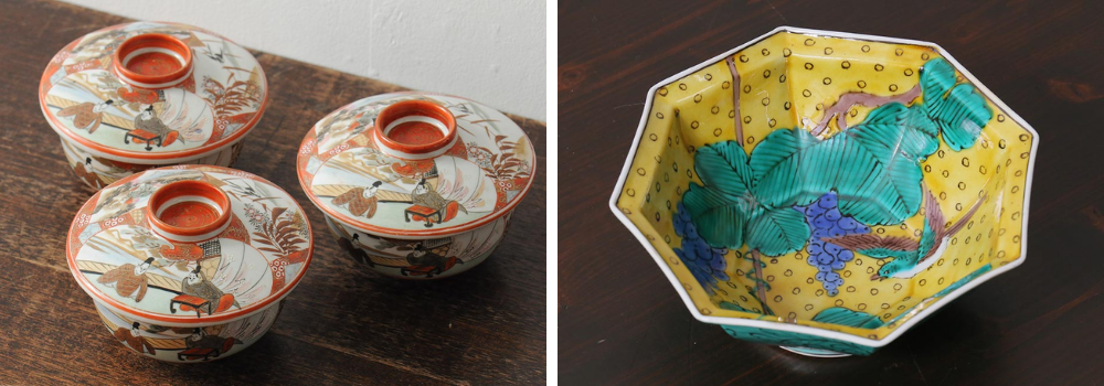 九谷焼は大きくわけて2つに分類され、創成期(1655年~1710年頃)の作品を「古九谷(こくたに)」、再興後(1800年~現代)の作品を「再興九谷」と区別して呼びます。
