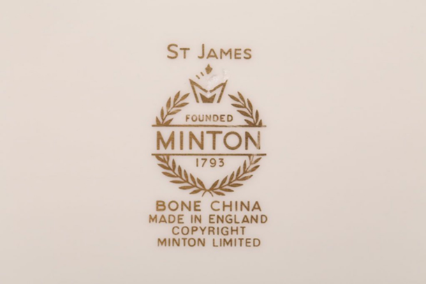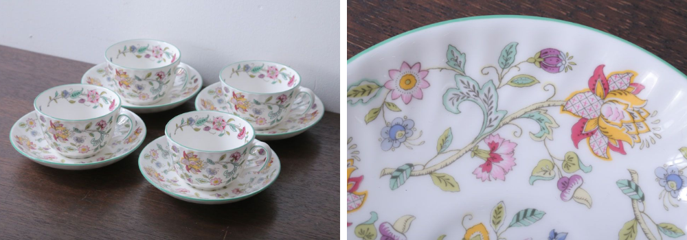 ミントンは現在、陶磁器の生産はしていません。しかしアンティーク市場では、入手が可能です。当店でも、ミントンの陶磁器を扱っており、大ベストセラーシリーズである「ハドンホール」シリーズ、「セントジェームス」とのコラボレーションシリーズなどの販売実績があります。