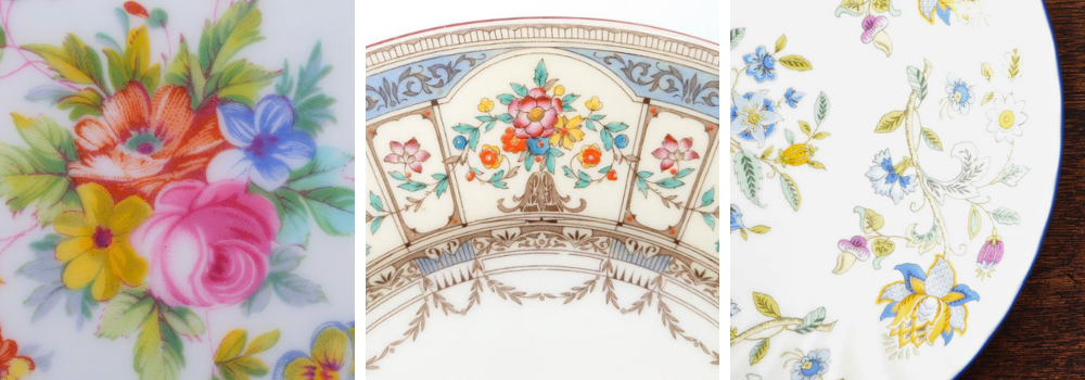 ミントンの陶磁器は、優雅なデザイン性と高い耐久性が特徴です。絵付けにはいくつもの革新的な技法が用いられ、独自の美しさがあります。またボーンチャイナを製造していたことでも知られ、頑丈な作りであることから実用性も兼ね備えていました。