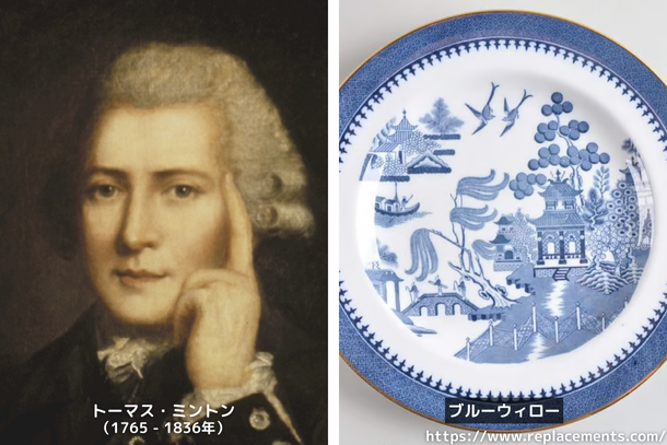 ミントン(Minton)は、1793年にイギリス中南部の窯業地ストーク・オン・トレントで誕生しました。創業者のトーマス・ミントンは、創業してまもなく「ブルーウィロー」のデザインで成功をおさめます。