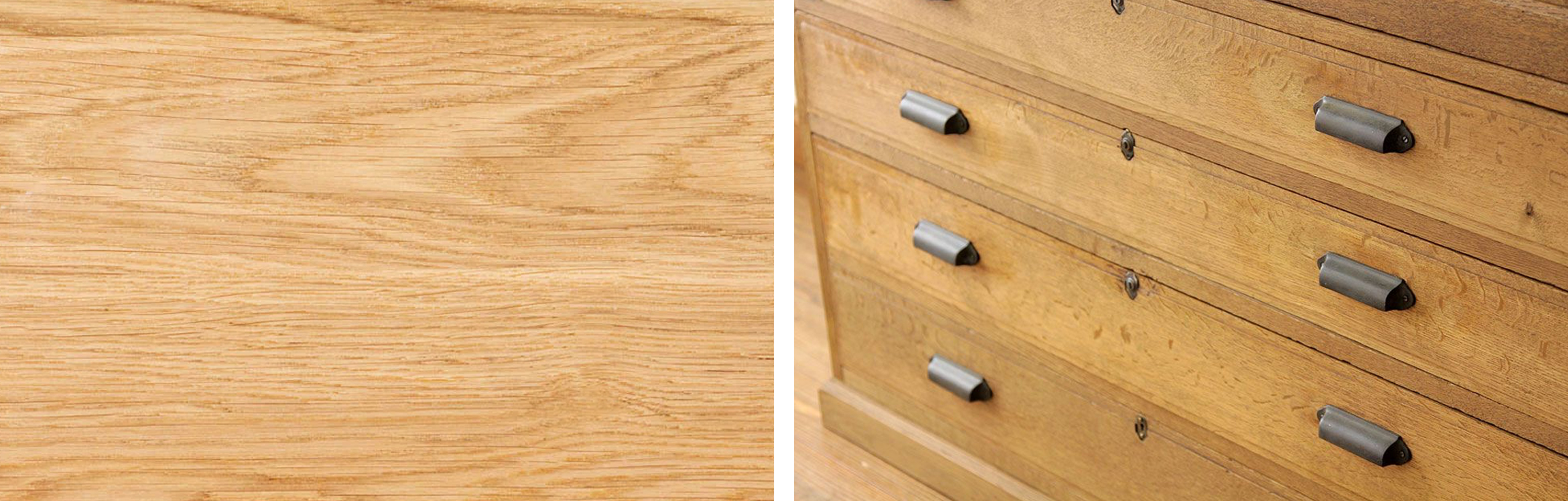 木材として主流なのは北米を産地とする「ホワイトオーク」「レッドオーク」ですが、日本のナラ材も英語でオークと呼ばれるほど見た目が酷似しているため、オーク材として流通しています。