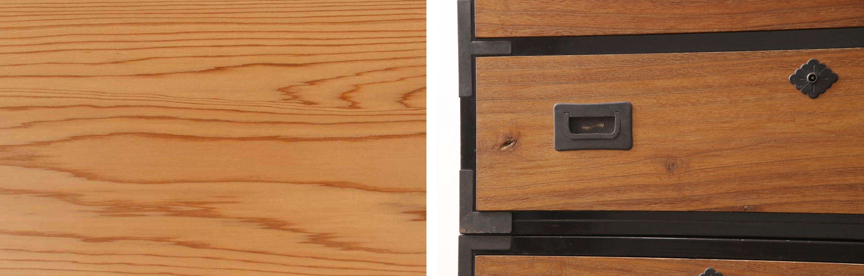 製材したばかりの無垢材は淡い色合いであることが多いですが、家具を使い込むほどその色合いは濃く深いものへと変化していき、自然な美しい艶が生まれて木の味わいを増していくその姿は、無垢材家具の大きな魅力です。