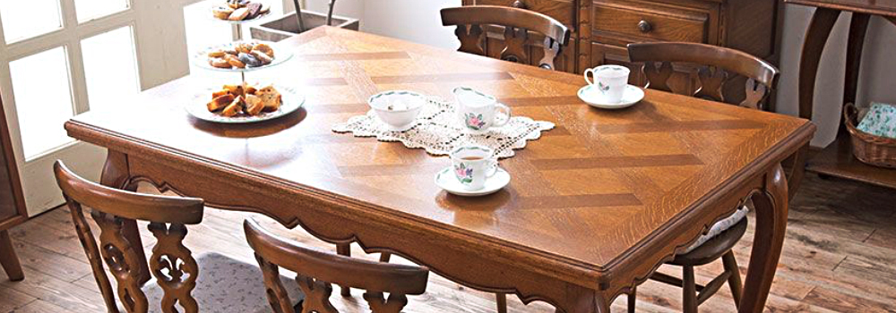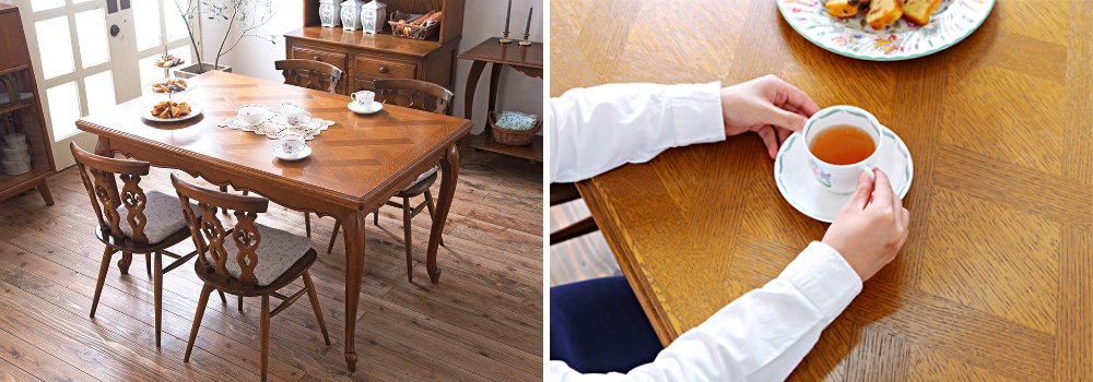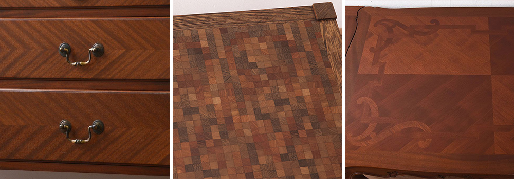 フローリング・建具・家具など幅広い場で用いられ、アンティーク家具においては特にフランス製でよく見かけます。