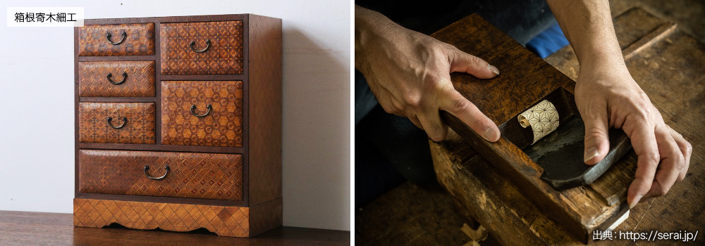 日本の寄木細工といえばやはり「箱根寄木細工」が有名ですが、こちらは江戸時代後期頃に初めて作り出されました。はじめは簡単な模様で作られていましたが、明治時代になると模様は複雑化していき、1984年には国の伝統的工芸品として指定を受けました。