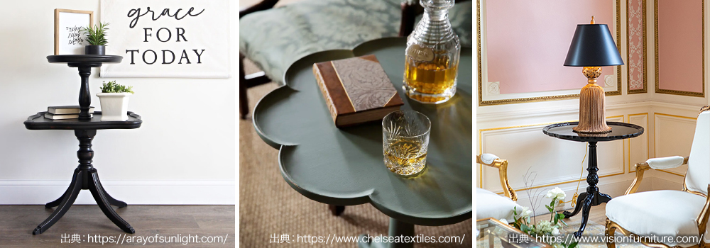 パイクラストテーブルは小振りなサイズで作られていることが多く、どんなシーンにも取り入れやすい造りとなっています。