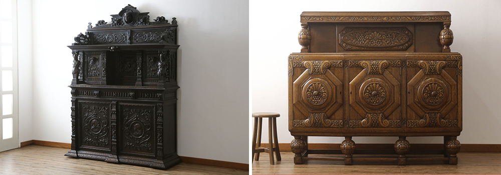 浮き彫りをあしらった家具は、製造国によってデザインの特徴や醸し出される雰囲気が異なります。それぞれの違いについて見ていきましょう。
