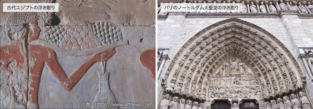 浮き彫りの技術は紀元前の時代から存在し、中世になると教会や大聖堂の装飾に取り入れられるようになり人気を博していきました。