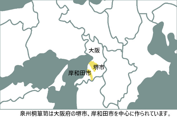 泉州桐箪笥(せんしゅう桐たんす)とは、大阪府の岸和田市や堺市周辺で作られている桐でできた箪笥で伝統的工芸品として指定されています。桐の箪笥は湿度に強く、耐火性にも優れているため、衣装箪笥などとして活躍しています。なかでも泉州桐箪笥は職人技の光る繊細さ、優美さで桐箪笥の最高峰とされています。