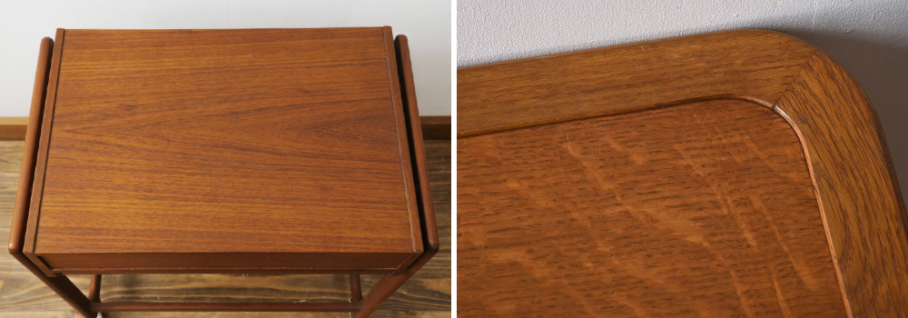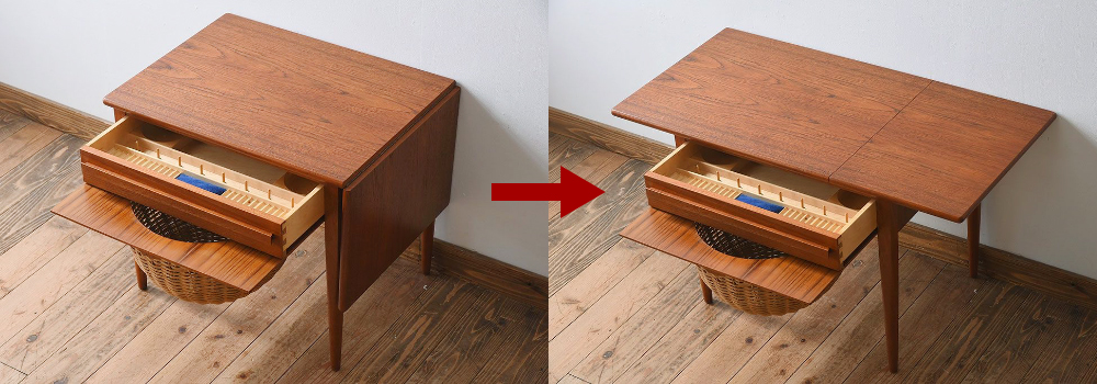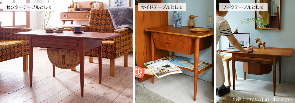 その機能性の高さは現代でも十分に活かすことができ、サイドテーブル・コーヒーテーブル・お化粧台など、アイディア次第で色々な活用法を楽しむことができます。