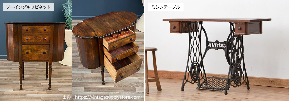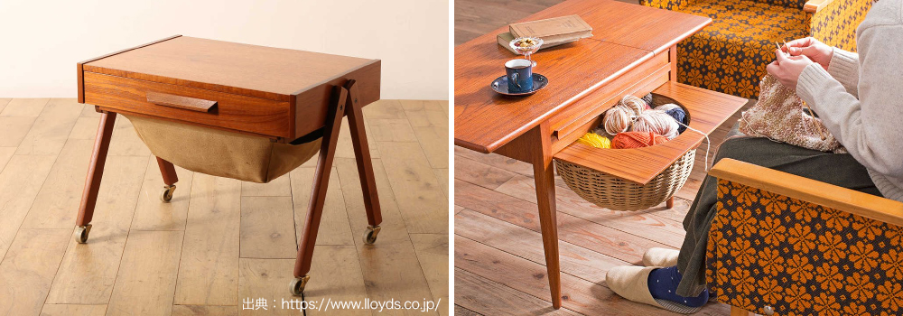家庭内の万能な家具であるソーイングテーブルには、ミシン作業に特化したミシンテーブルとはまた異なる魅力があり、当時から変わらぬ人気を集めながら現代でもなお様々なデザインのソーイングテーブルが生まれ続けています。