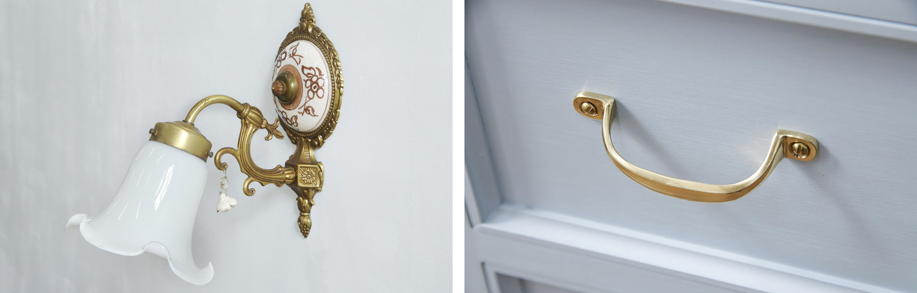 シンプルなデザインは真鍮の美しさを際立たせ、さらにアンティークのような雰囲気もあるので、ラグジュアリーな空間・シャビーシックな空間など様々な空間作りに役立ちます。