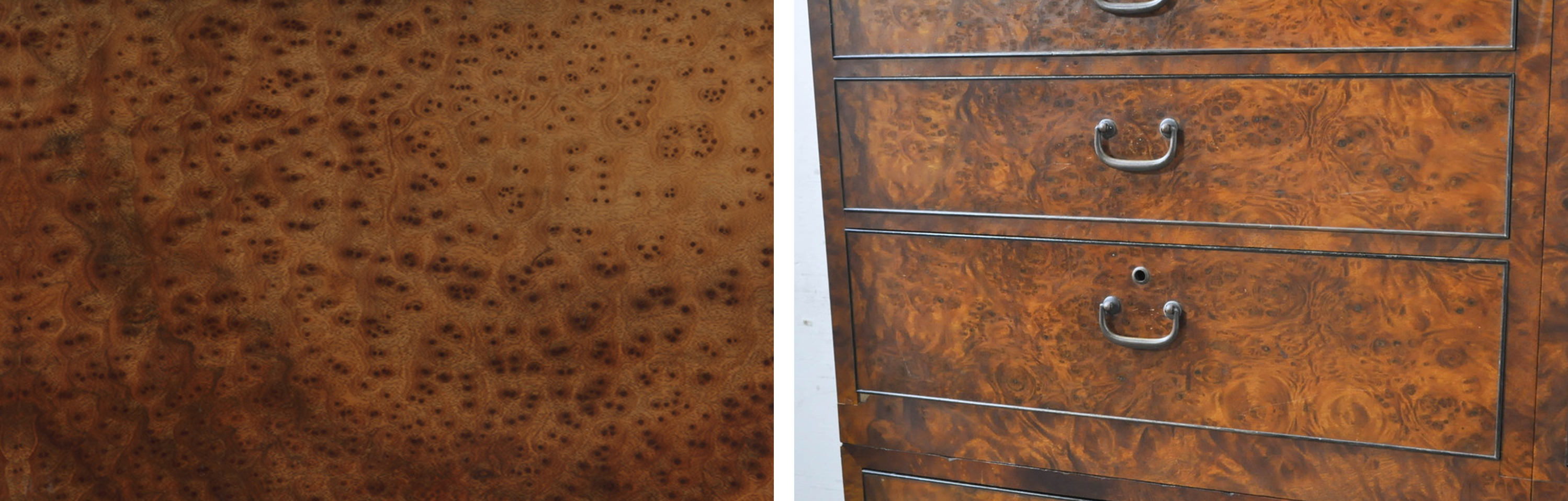 現在も貴重なものとして希少性が高まる玉杢のある家具は、経年と共に深みが増し、より重厚な佇まいを感じさせます。
