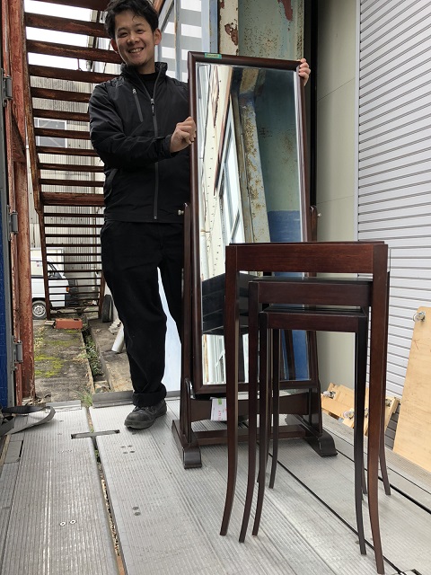千葉県市川市のお客様より、松本民芸家具の姿見、Baker社のネストテーブルを買い取らせて頂きました。