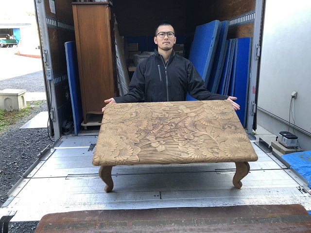 福島県会津若松市にお住まいのお客様より、日光彫のセンターテーブルを買い取らせて頂きました。