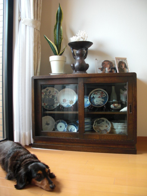 趣味の骨董の器にぴったりの飾り棚で、満足していま~す。