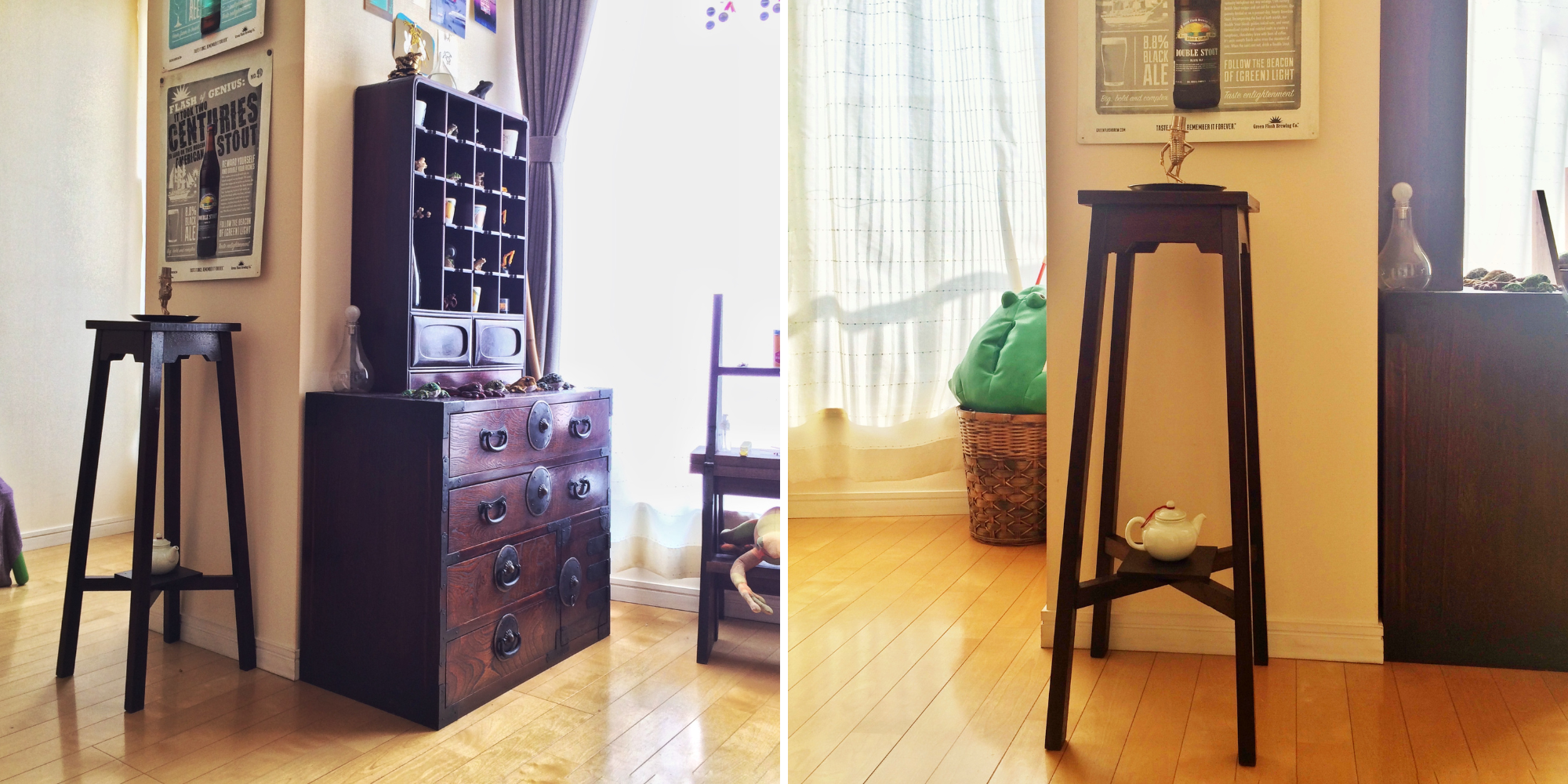 お選びいただいた花台は和の雰囲気をしっかりと出してくれるので、お隣に並んだ和箪笥ともぴったりマッチしていますね♪