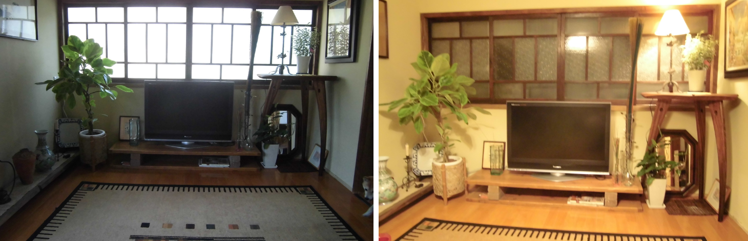 既存のサッシ窓だけでは断熱効果がないと思い4枚立てのガラス戸を購入しました。大工さんが上手に仕上げてくれました。カーテンなどよりもず~っとすてきだと自慢できます。