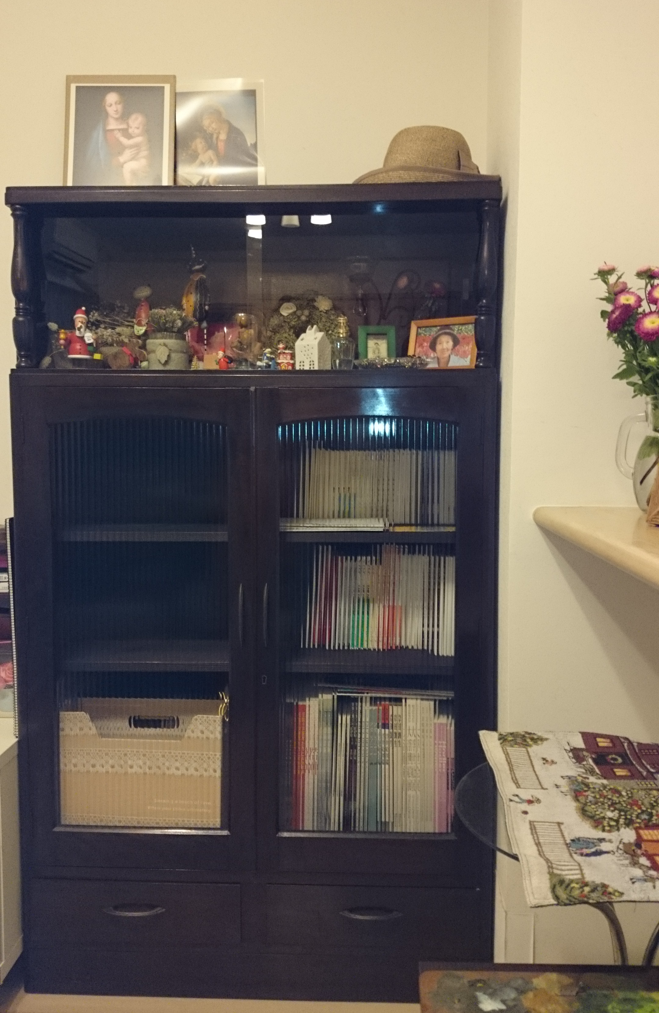 収納棚の上の部分を、かわいい小物やお写真のディスプレイにお使いいただき、思わず微笑みがこぼれるようなほっこりとした空気感が生まれていてとても素敵です!
