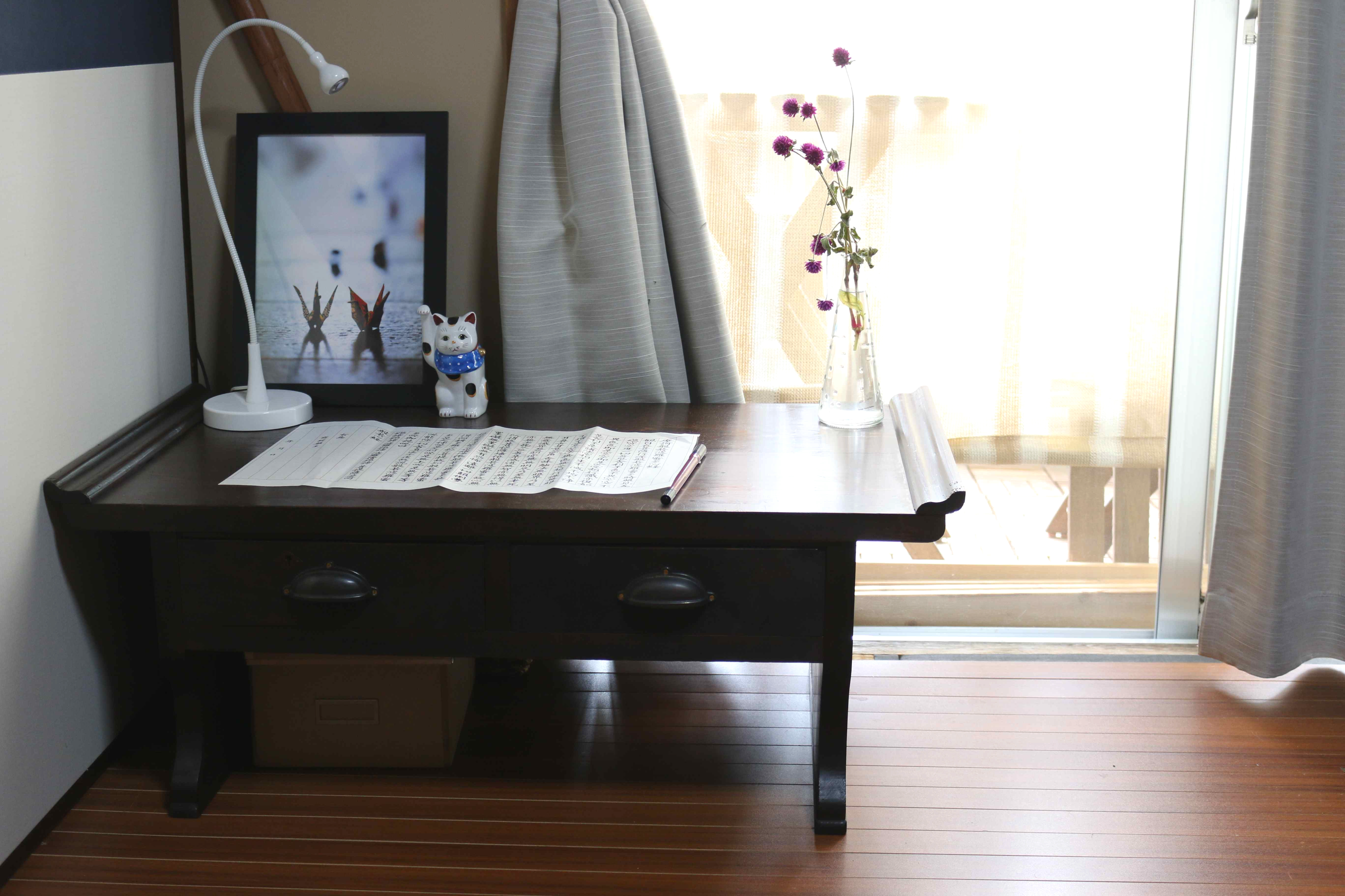 この文机の前に座ると心落ち着きやすらぎを感じます