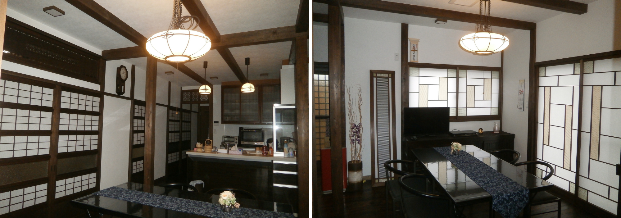 水屋箪笥、欄間ととてもいいお品でとても良い空間ができました。