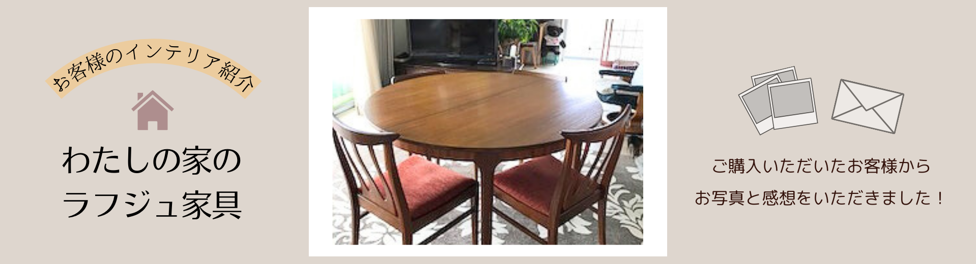 お部屋の中心となるダイニングテーブル・チェアに、ラフジュ工房の商品をお選びいただき、スタッフ一同大変光栄に思っております。