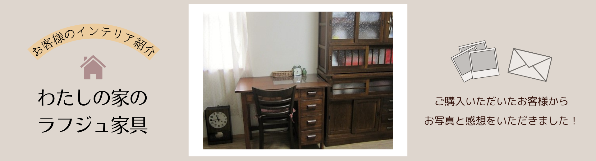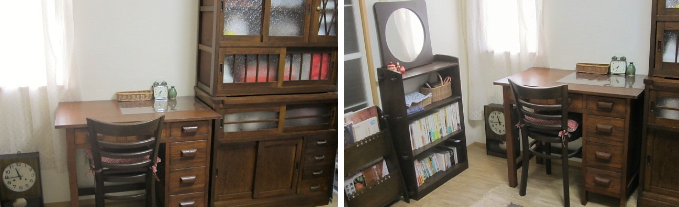 この度は、ラフジュ工房の和製アンティークデスクと食器棚をご購入いただき誠にありがとうございます。