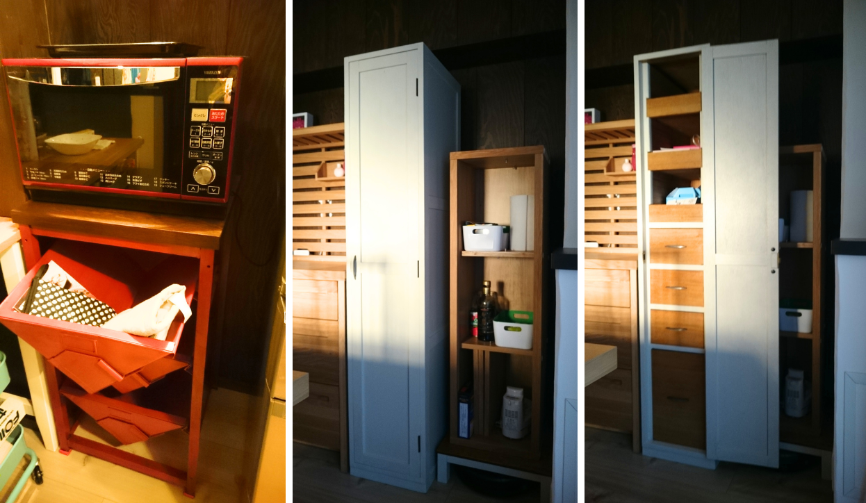 ペイントカラーと上に乗せた電子レンジの色が同じような赤で、サイズもぴったり!