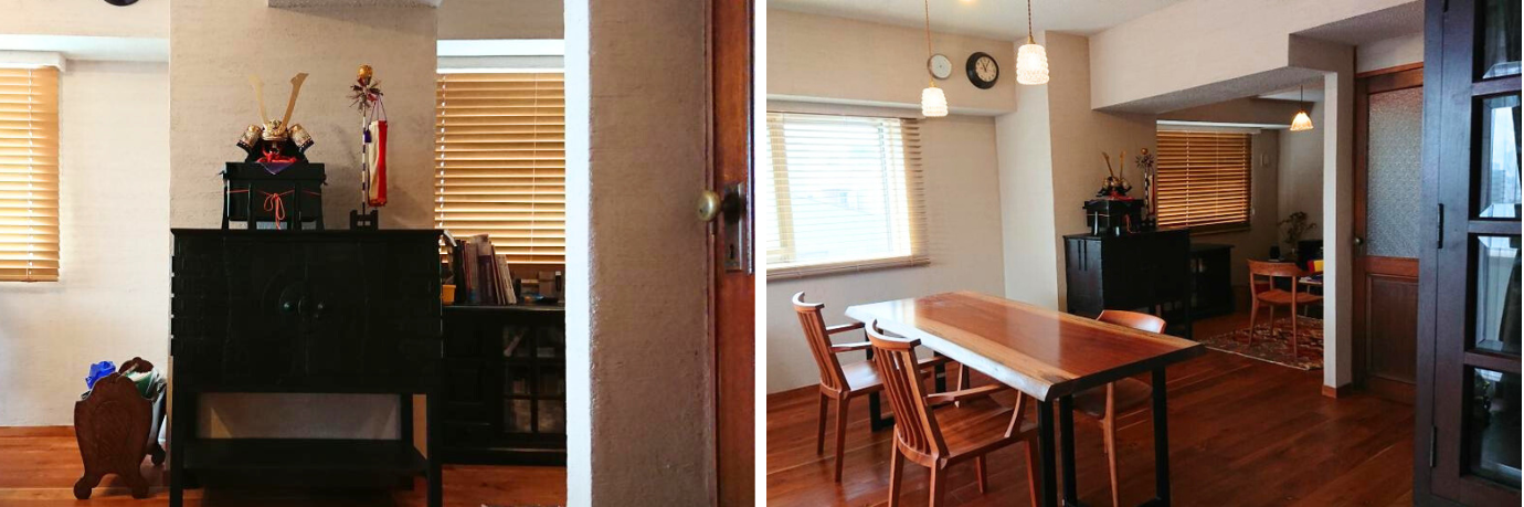 端午の節句にはサイドキャビネットの上にお子さまの兜を飾ってくださったのですね。