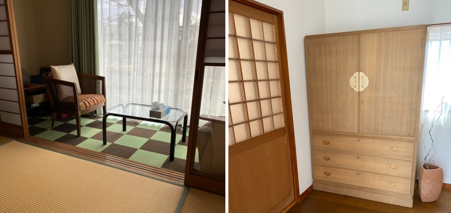 加茂桐箪笥は「カスタムできるアンティーク家具・建具」のお品で、あさひ様のご希望に沿わせていただき、桐材本来の木目や色味を活かした木地色仕上げを施しました。