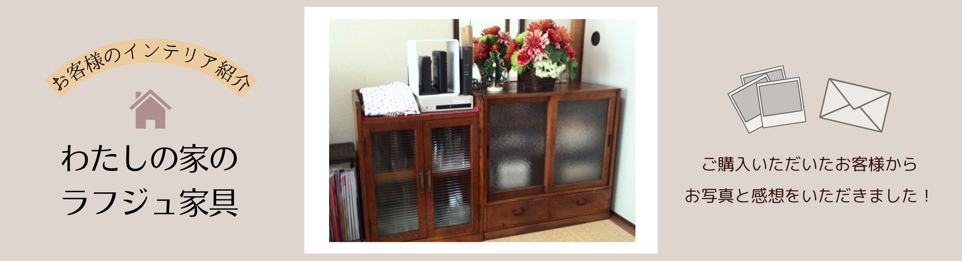 この度はラフジュ工房の和製アンティーク収納棚をご購入いただき誠にありがとうございます。
