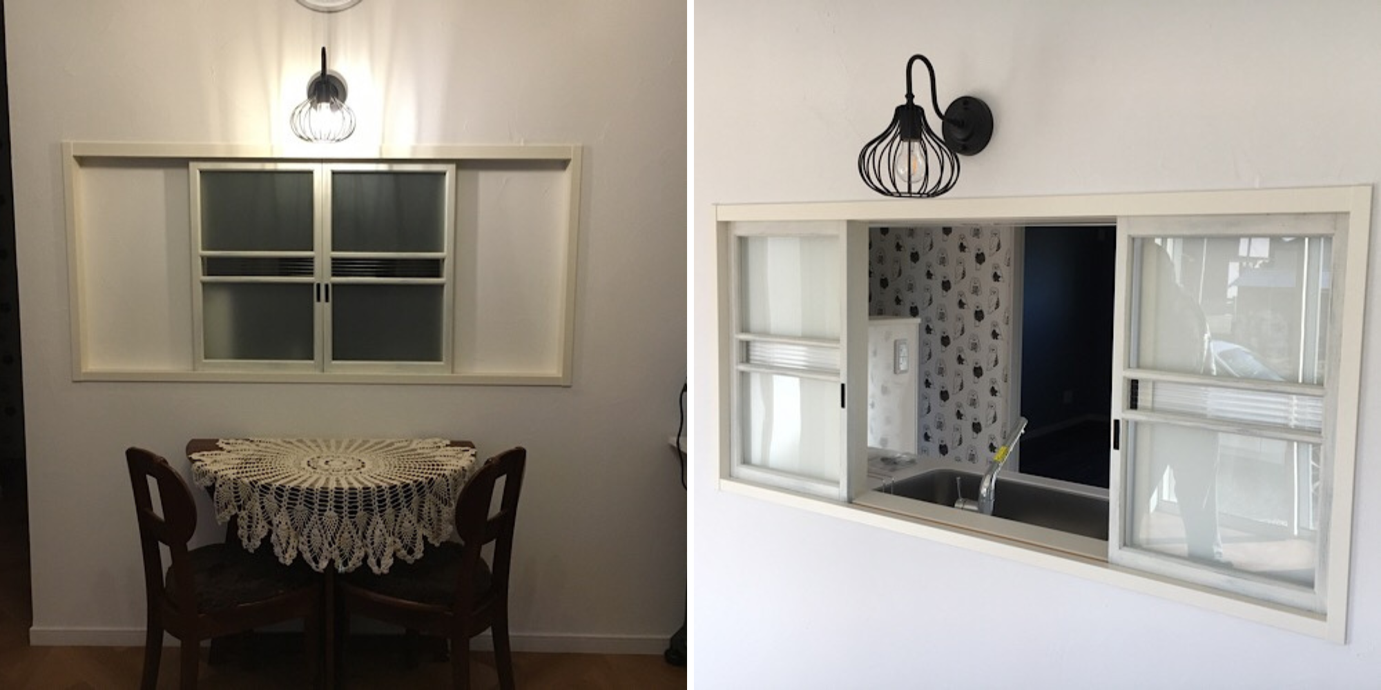 お選びいただいた窓のデザインがシャビーな雰囲気でとても可愛らしく、明るくオシャレなお部屋の中で目を惹く存在となっていますね!